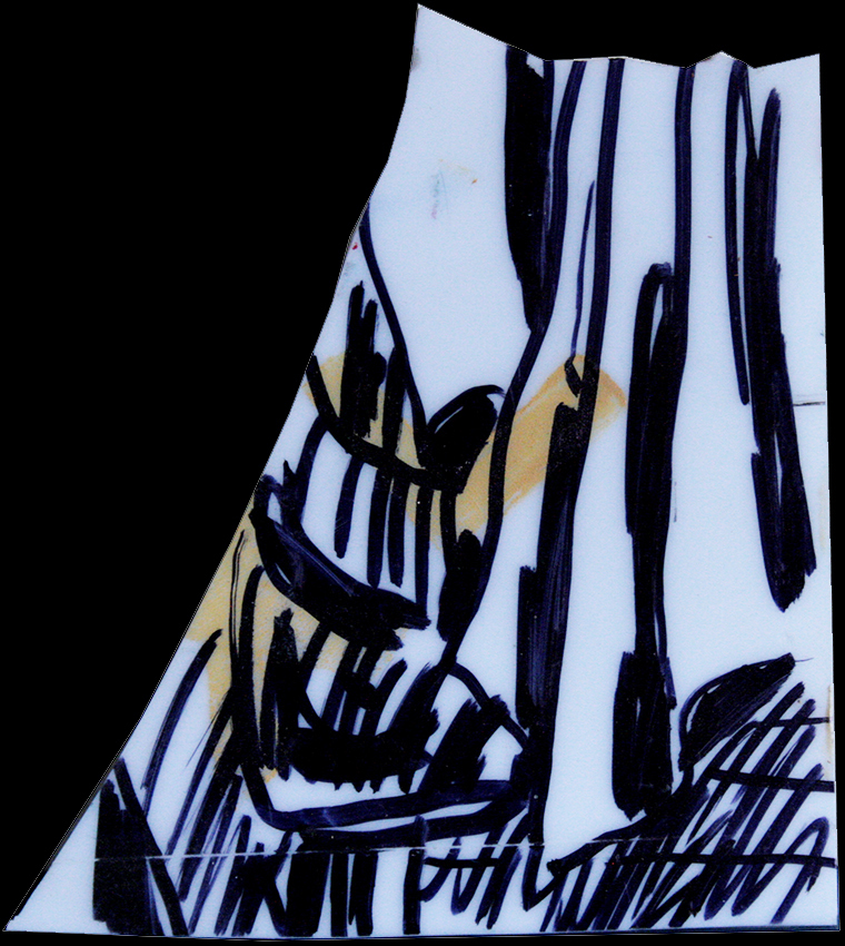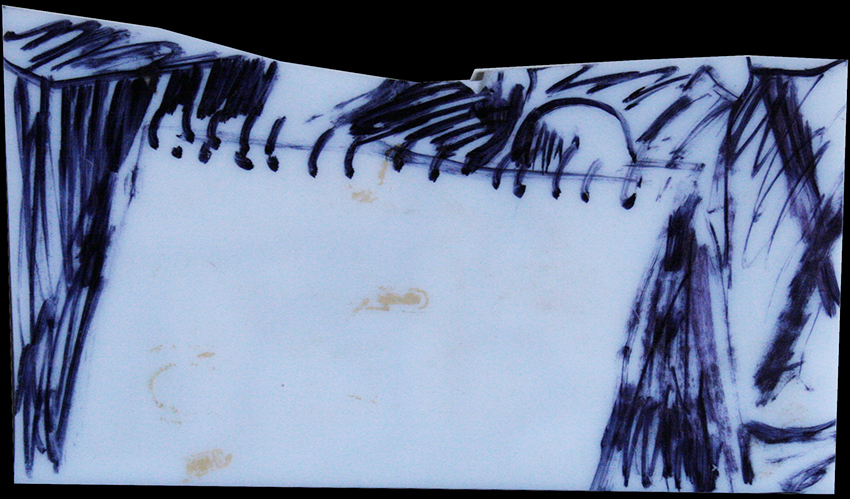 שברי פרספקס ודיקט מסומנים בחומרים אילתיים.