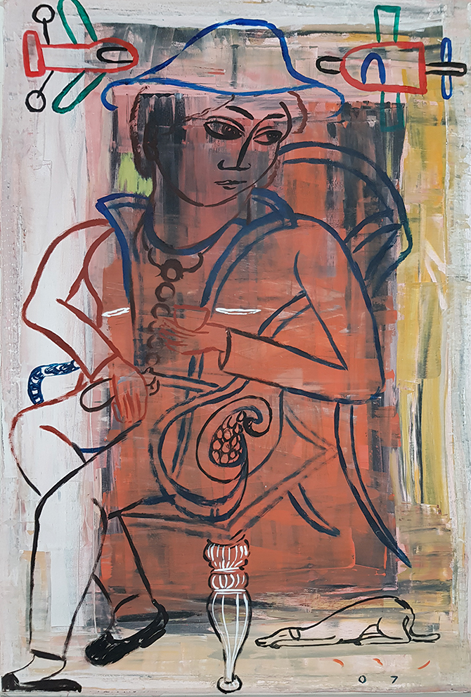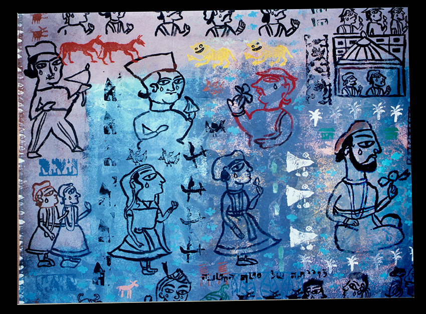 ב2001 נסעתי בפעם הראשונה להודו. מאז ערכתי כמה מסעות בתת היבשת המופלאה הזו. כל מסע מביא עמו חומרי יצירה חדשים וכך נוצרות להן עבודות חדשות. בעצם תמיד עולים אותם הנושאים. רק זווית הראיה משתנה מעט ועמה גם אופן הניסוח – הקו, הצורה והצבע.