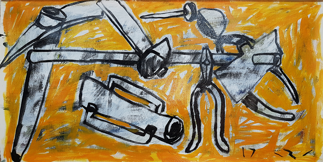 עבודה מתחילת הדרך. צבע תעשייתי על גבי בד ערבי