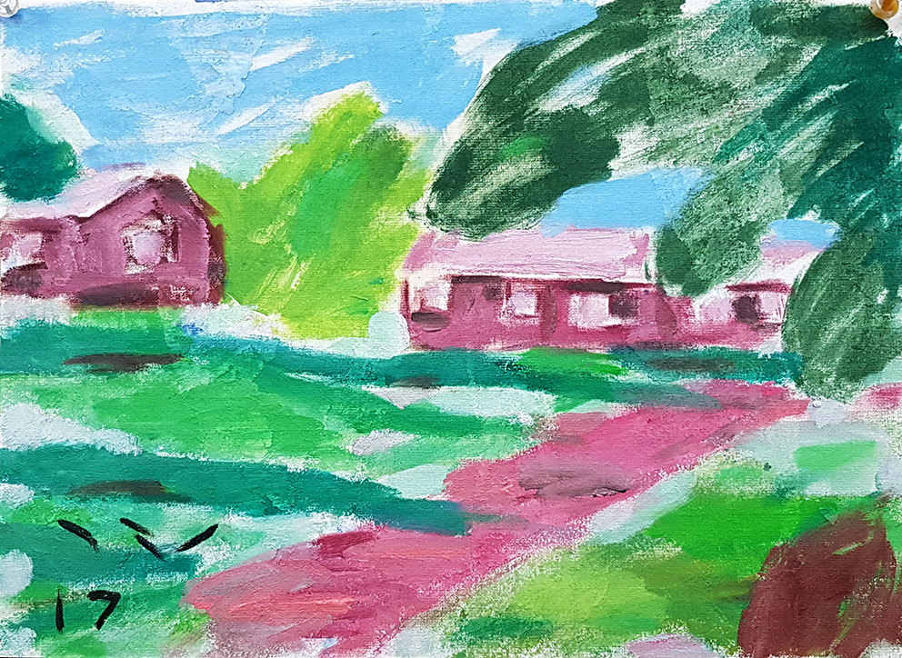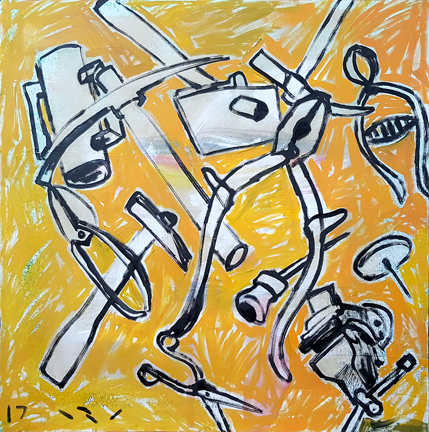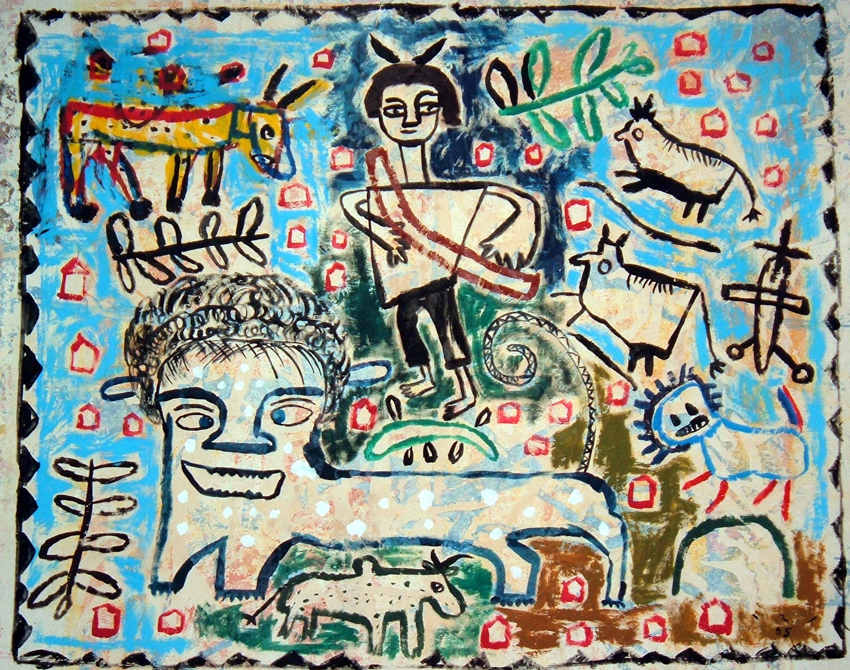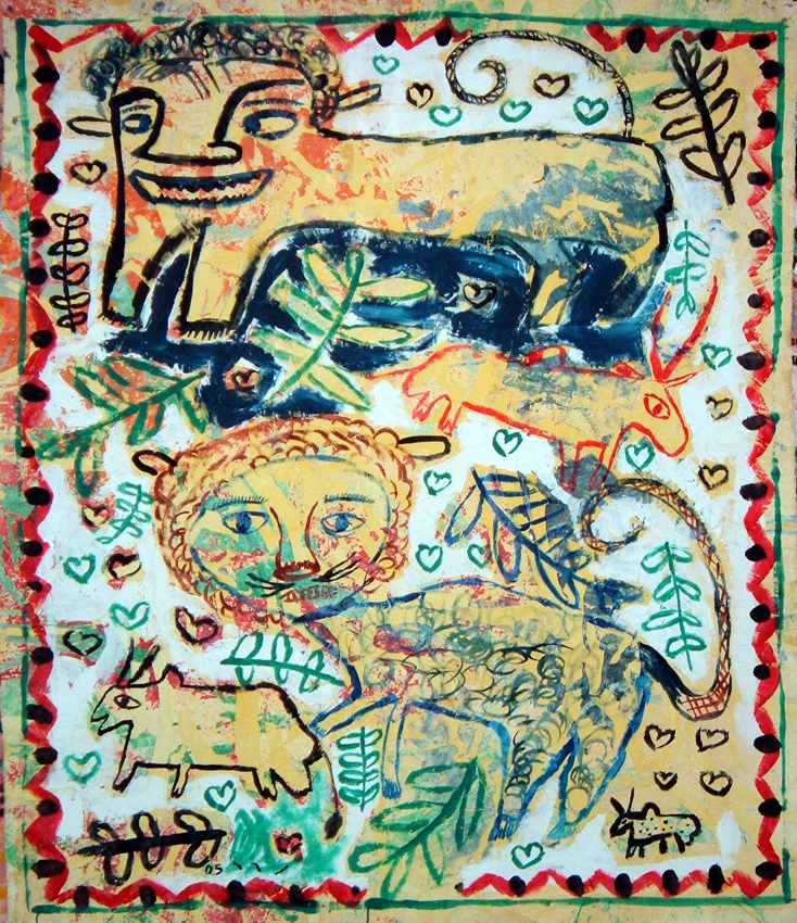 ב2008 עבדתי על סדרה שקראתי לה זכרונות ילדות. צבע על בד, 200cm X 200cm
