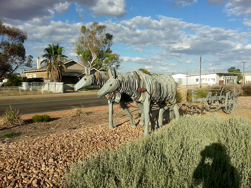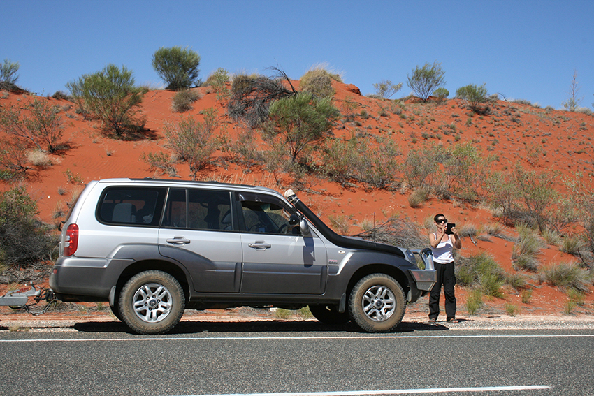 סלילת הכביש הזה בין דארווין לאדלייד ארכה כ-10 שנים ונסתיימה ב-1987. ארכו 3017 קמ'. אנחנו מתנהלים עליו. כ-300 קמ' ביום עם קרון נגרר. מערב פרוע אמיתי. בפורט אוגוסטה החלפנו את השמשה הקדמית שנופצה מרסיס אבן ובאליס ספרינג נאלץ לקנות ראש חדש לשנורקל שואב האוויר של מכוניתנו הנאמנה. מישהו גילח אותה באוגוסטה. שיהיה בריא. במערב הפרוע כמו..