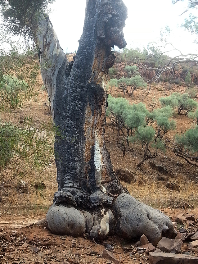 עץ הגומי האדום הענק. אקליפטוס מדברי בן חמש מאות שנה בקניון הקדוש בלב הרי הפלינדרס הצפוניים. החצי (חצי, לא מחצית..) השני. התחלה חדשה. עץ נהדר.