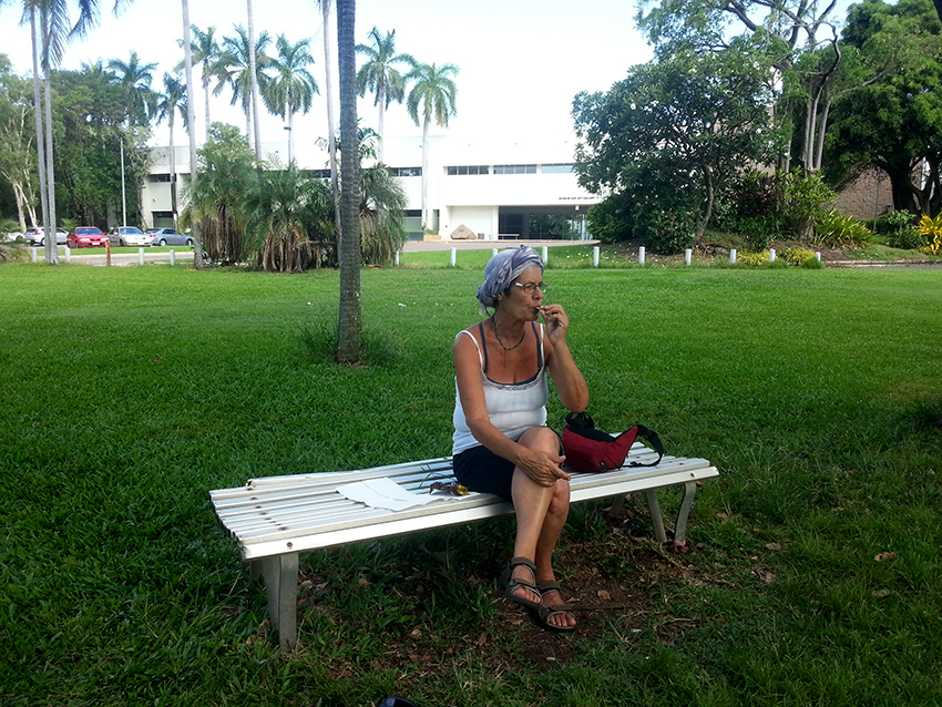 טאונסוויל, החוף הצפוני מזרחי. טרופיקנה אמיתית. גן עדן זה כאן. שכב לך בצל הקוקוס-מנגו-בננה, הושט יד עצלה אל עבר הפרי הבשל, או/ו חזור לנמנם על גבי החול הלבן הרך לפני הטבילה הבאה בים האלמוגים הצלול, הירקרק תכלכל.. אוי.. מדוזה עוקצנית מגיעה.. לברוח מיד.. אמא.. שלא תיגע בי.. מתים מזה.. בדרך כלל.. ונצואלה ונצואלה.. אני רוצה לפתח תקווה..