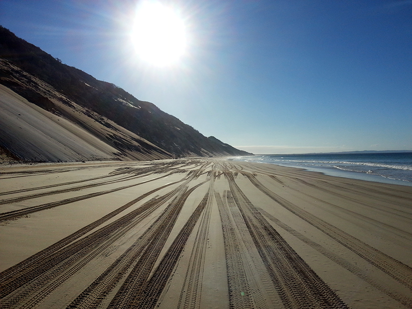 עכשיו זה כבר מין נופש על גלגלים. יורדים לחופים הארוכים של ריינבואו ביץ' בואך פרייזר איילנד. מצוקי הבזלת של ההינטר לנד, יערות הגשם והנחלים המתחתרים ביניהם, הים והשמים. שמים ללא גבול. מסכמים, מסיימים, שמחים מאוד על הכל. בעיקר על החזרה הביתה..