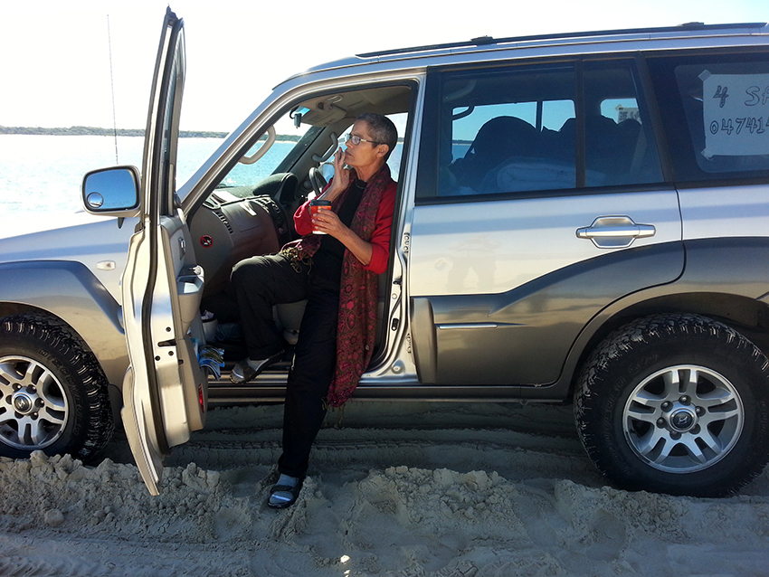 ריינבואו ביץ', האי פרייזר, אי החול הגדול בעולם בלב האוקיינוס הגדול בעולם, כלבי דינגו , צבי ים, דולפינים, לוויתני סנפיר ענקיים מזנקים מעלה, ספינות טרופות, צבעי כחול וירוק על חול לבן ויערות שחורים. מוציאים אוויר מהגלגלים ושטים על החול הרך לאורך החוף. מסלולי היער מרושתים בשרשיהם של עצי הג'ונגל וקשים מאוד לנהיגה. סוף המסע. איזה סיומת נהדרת. אפס תקלות ברכבים במשך עשרה חדשים מדהימים. בקמפינג המגודר נגד כלבי הדינגו, באוהל, על המזרנים המתנפחים מאליהם, לאורו הקלוש של הפנס.. שנינו.. איזה כייף..