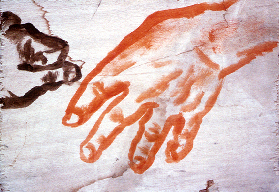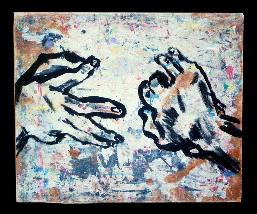 הצבא נטש מחנות במרחב קציעות ואלה היו אוצרות בלומים של אובייקטים. אספתי שם חפצים שונים, ביניהם קרשים של ארגזי תחמושת ישנים שעליהם ציירתי. בעיקר ידיים. ידיים עוזרות.