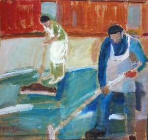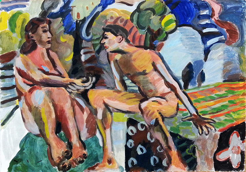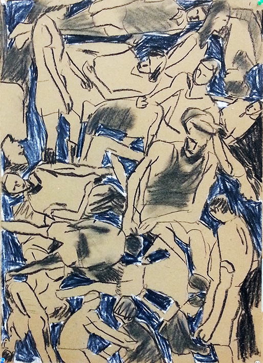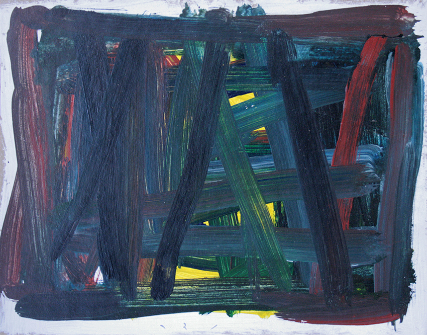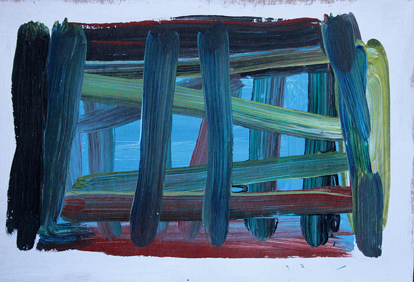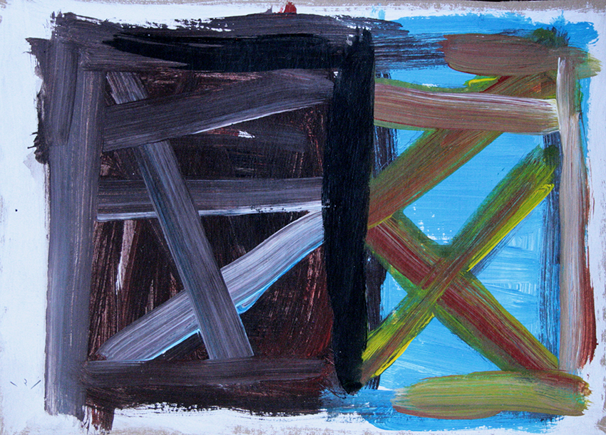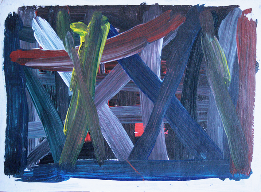 אני אוהב נייר. קרטון משמש לי מצע להנחת צבע. היד מובילה עצמה באופן כמעט אוטומטי על פני השטח, ללא כוונה מודעת לנושא מוגדר כלשהו.
