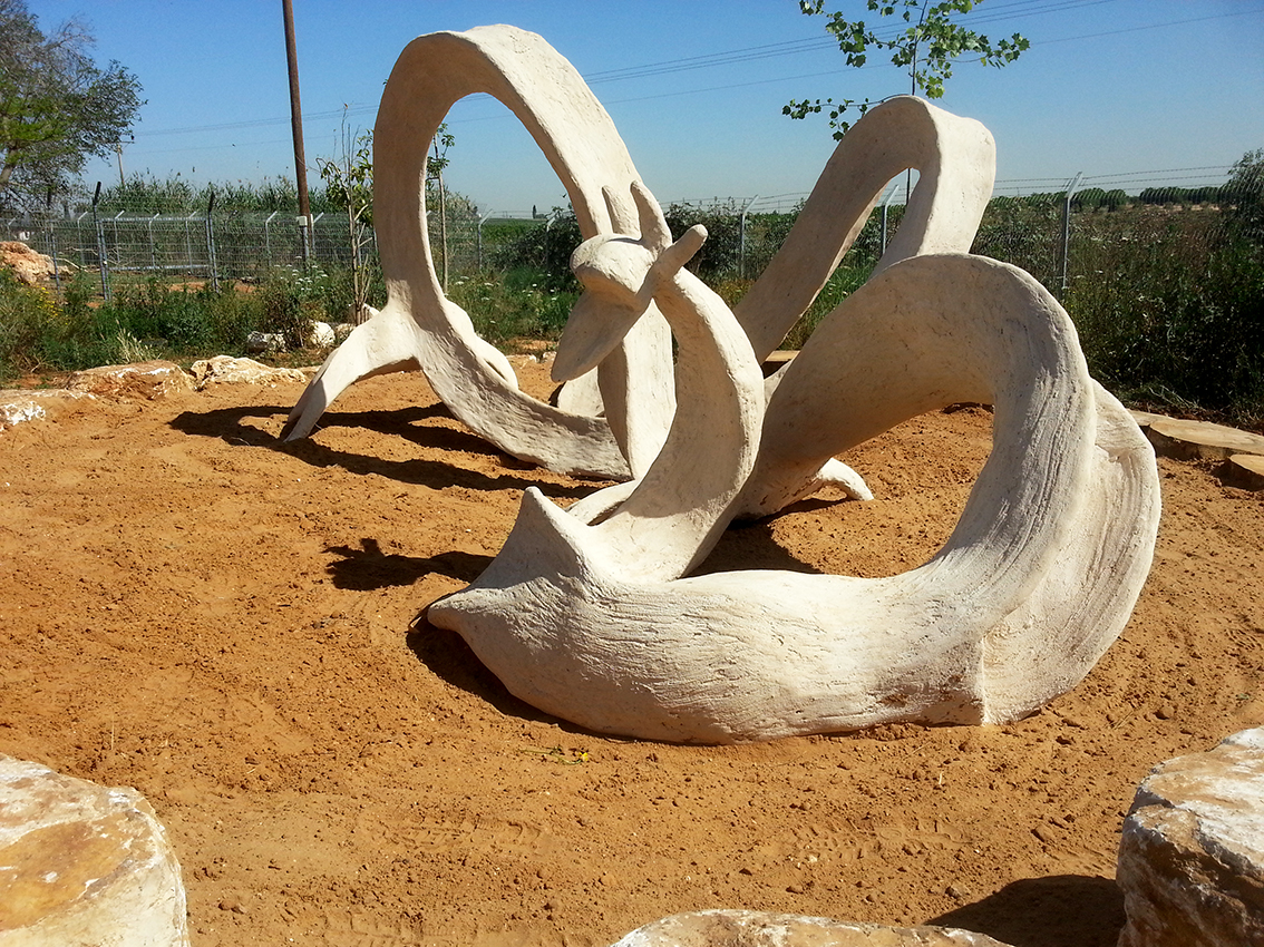 אובייקט מדברי עם מטרת דמות וציפור, בטון על שלד ברזל, 300X80X80