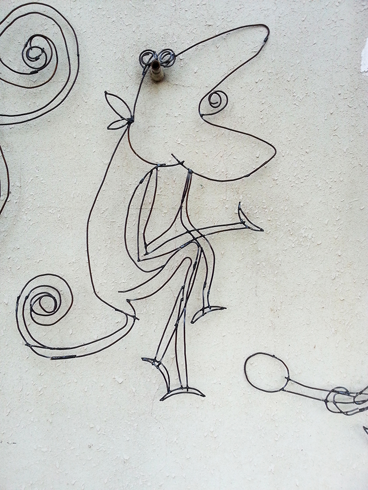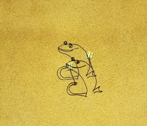 זיקיות. רישום באמצעות ברזל בנין על קיר. סוג של גראפיטי.