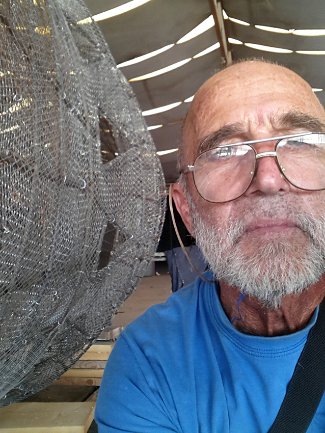 שלב הרשת לפני סיום. סלפי עם שלד השובך..