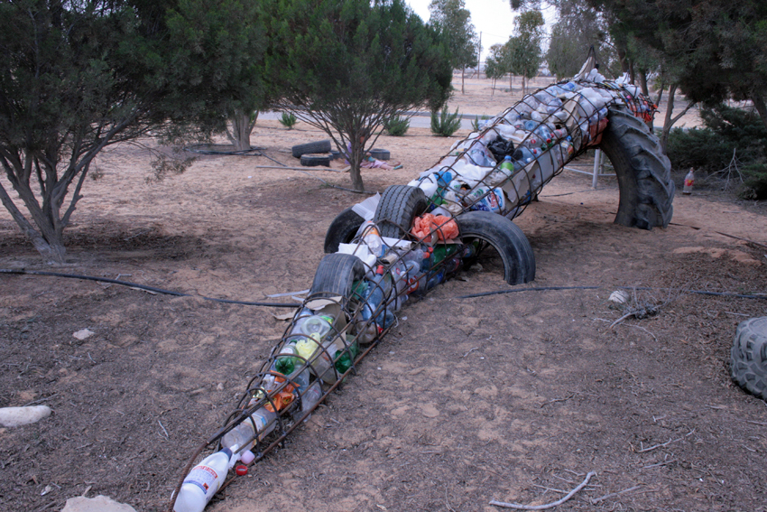 מילוי בחומרי מיחזור שונים..
