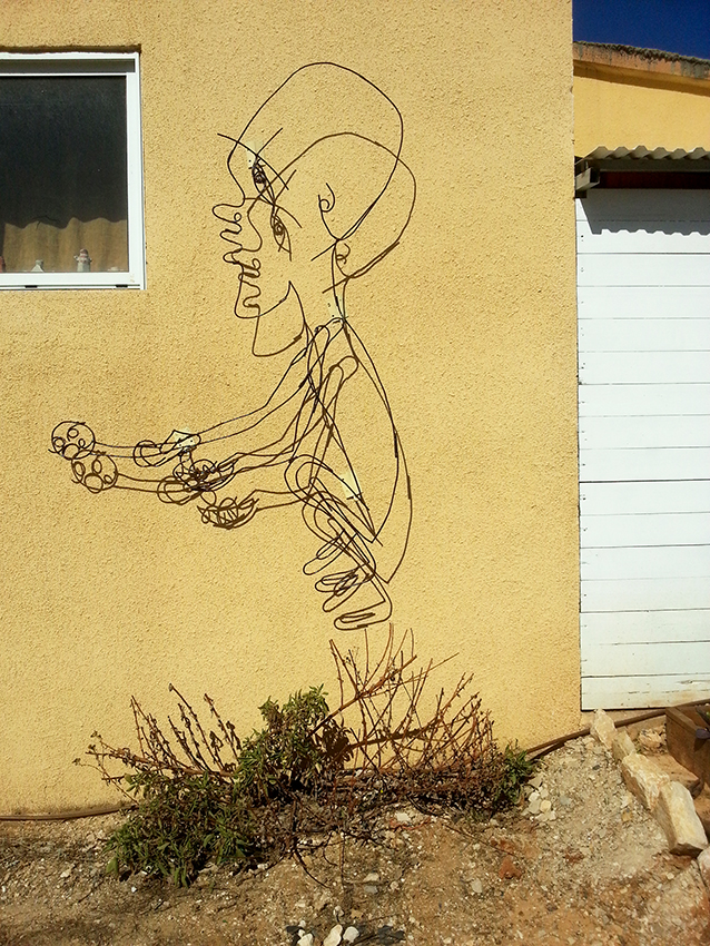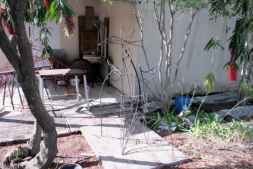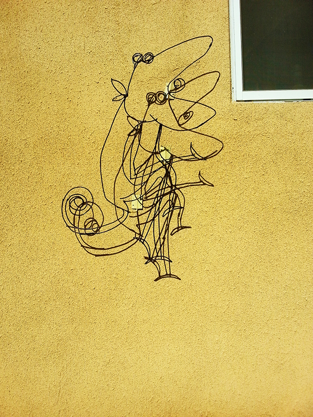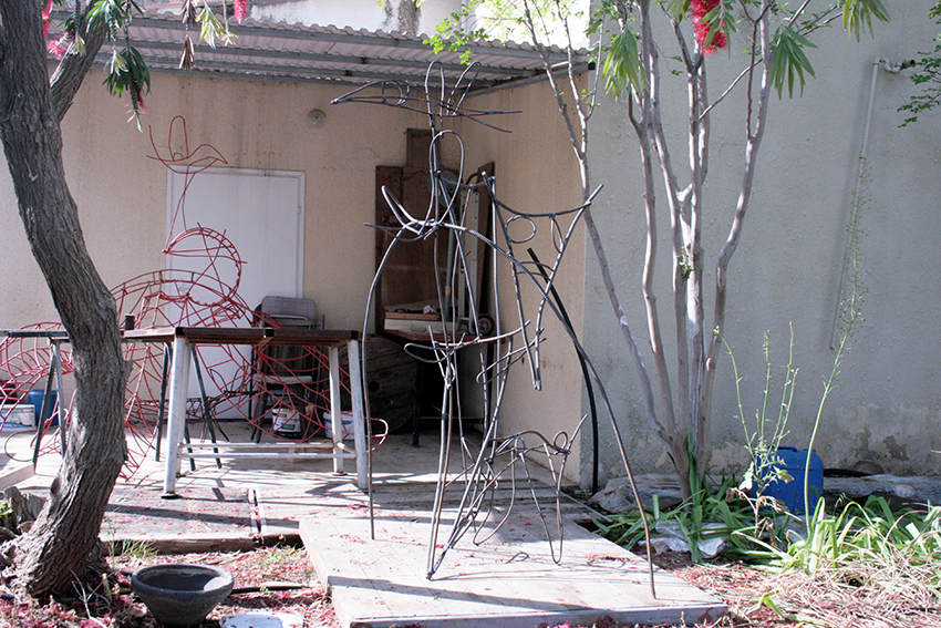 הקיר של הסטודיו, "רישום" בברזל. מתקשר אצלי למעין אמנות רחוב.
