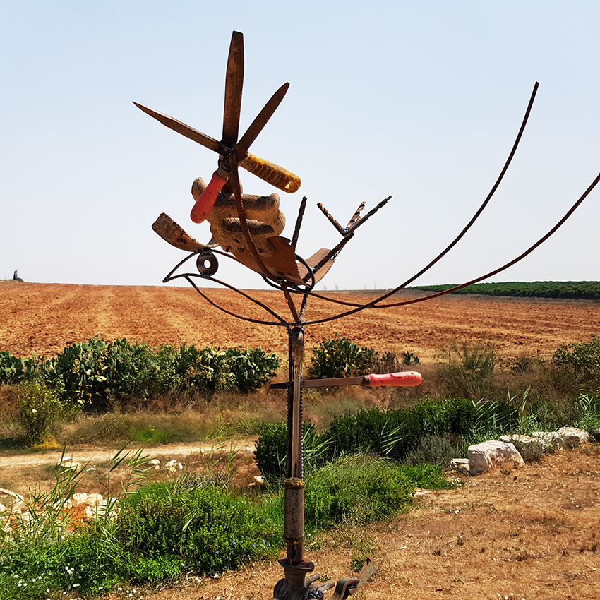 פסלי ברזל ליד האסם בנען