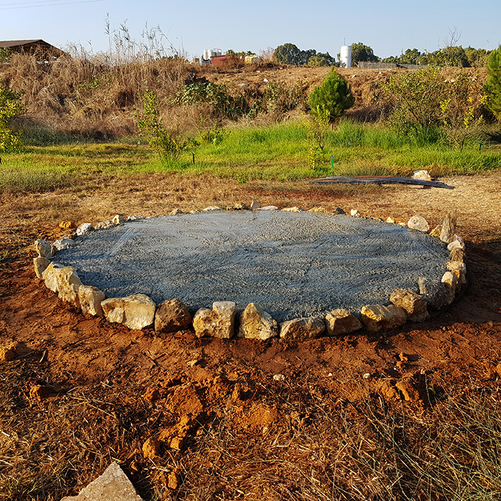 שלב הבטון. שכבה ראשונה. נעשה בעזרת צוות מתנדבים מופלא מנען.