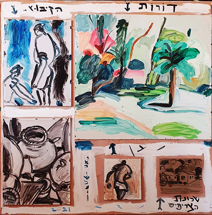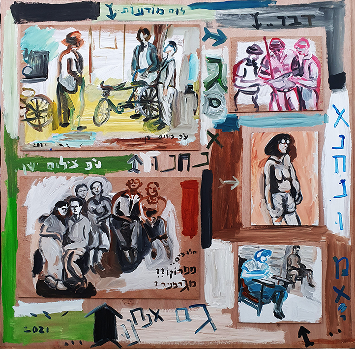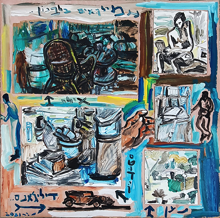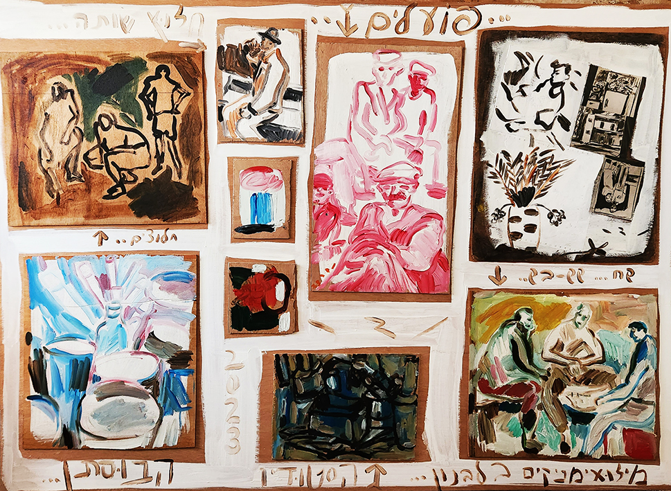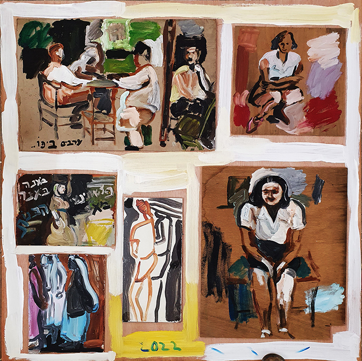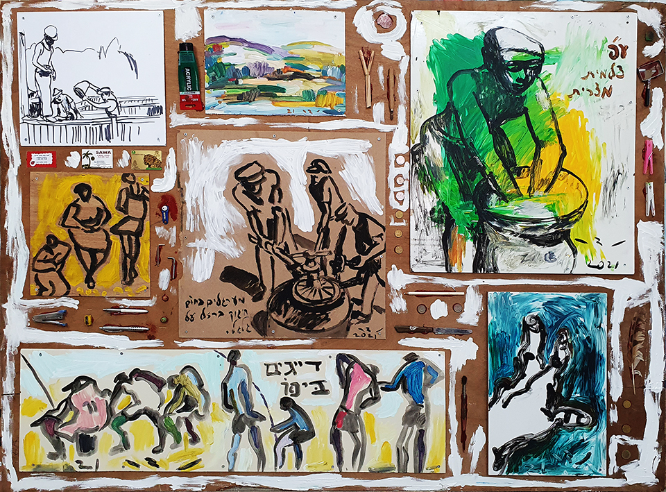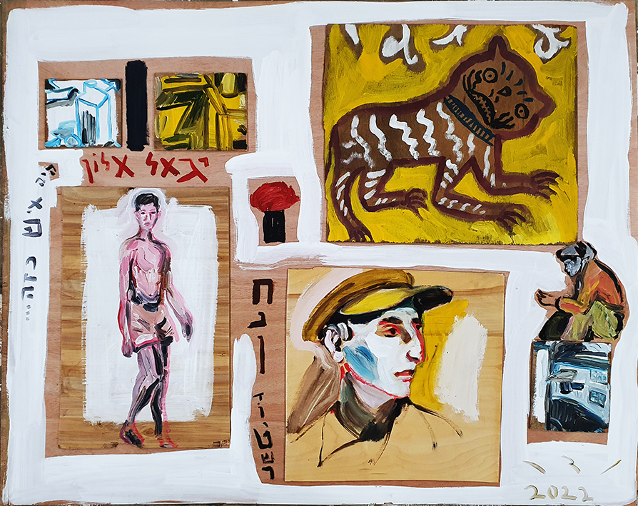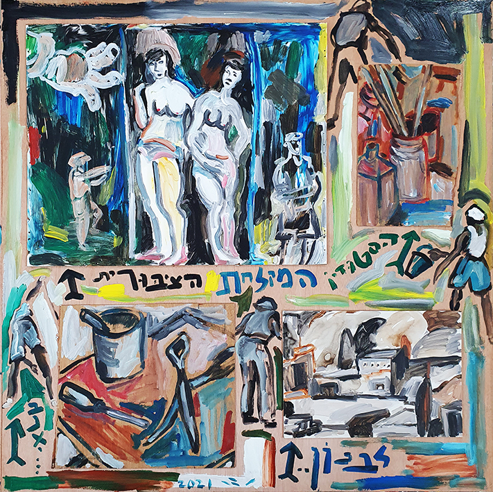 קרשים ועוד collages ..אורלי לוי.. איזו טעות.. טלח.. עופרי רכשה והציבה בחדרה.. אצל שקד וזיו.. בסלון של מיקה.. מטוס על גבי פלטה.. מראה על כיור.. כפר הצוללים באילת.. 2005-6 צבע אקרילי על לוח פורמייקה.. באצבעות בלבד.. עופריקי בת ה-6 לימדה אותי.. קטע קטע ציור מפעם.. מצאתי.. אוסף מועדון נען אוסף מועדון נען 190X140, קולאז בנוי מתקופות שונות.. קולאז, 202X83 גילה ודרורה ככה היינו כולם/ן קיבוצניקים של פעם.. חלוצים/ות אמיתיים/ות.. מין שמאלנים-ימניים שכאלה.. פלמ"ח.. ככה היינו.. אמא ואבא.. מעולם !! מעולם!! לא הרגשתי עצמי מקופחת.. למרות.. רישום צבע, פרט. מדבקה, פרט. מדבקה, פרט. פרט. עבודה לא גמורה של עופריקי ושלי.. עבודה משותפת עם עופרי בת ה-7 122 על 122ס"מ דיקט, 122ס"מ על 122ס"מ ארבע עבודות 122ס"מ על 122ס"מ מחוברות יחדיו דיקט מודבק על חלון ישן.. 2מ' על 2מ' תיקנתי.. צבע תעשייתי ואקריל ע"ג מזונית.. ערבי??.. ישמעלי??.. יהודי??.. חלוצה קיבוצניקית.. פועלים.. שותי האבסינט.. מה זה בדיוק??.. צבע אקרילי על דיקט.. 118ס"מ על 70ס"מ.. פועלת עבריה.. הסטודיו הישן.. מילואים בלבנון.. שוטפים כלים.. לבנון.. משחקים שח.. או שש-בש.. רישום צבע.. בנות נען.. הנהדרות.. 170ס"מ על 122ס"מ, קולאז', אקריליק על דיקט.. שתף לשתף ב-X (נפתח בחלון חדש) X שתף בפייסבוק (נפתח בחלון חדש) פייסבוק אהבתי טוען...