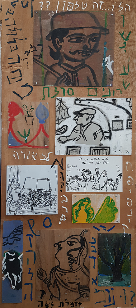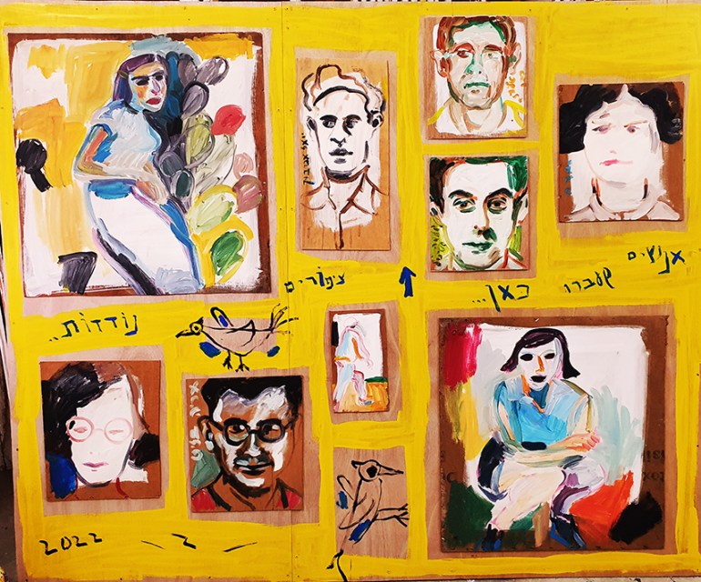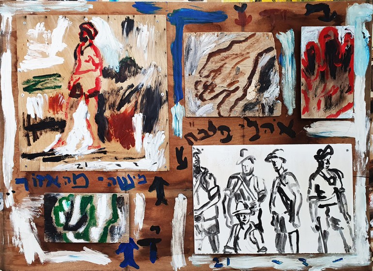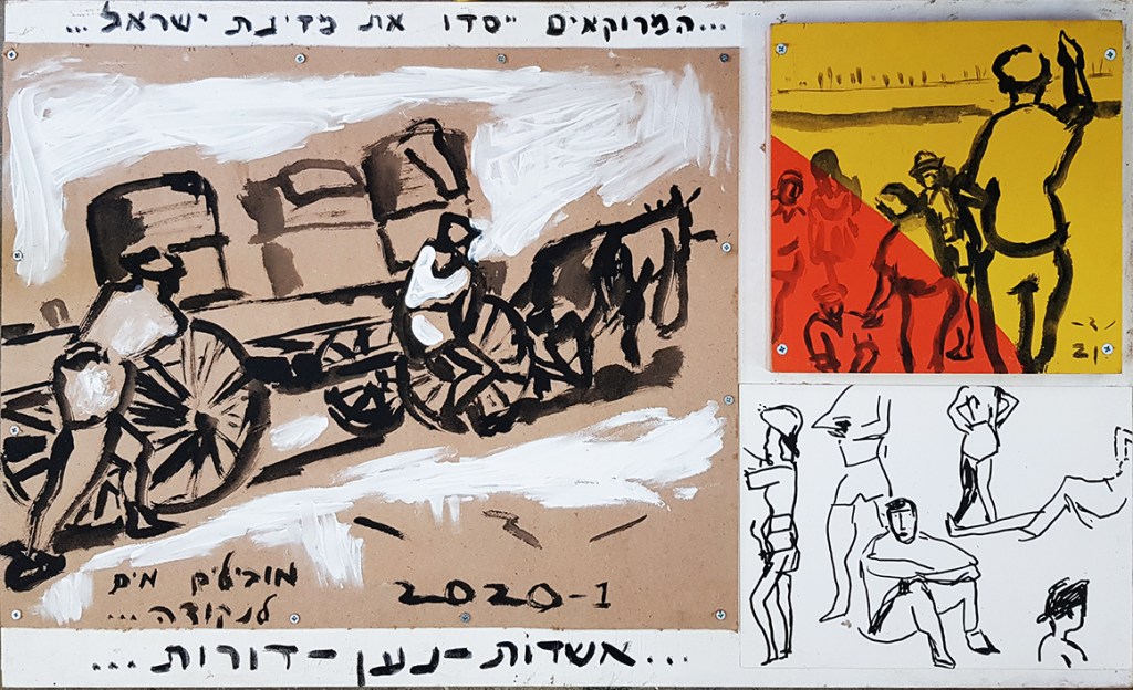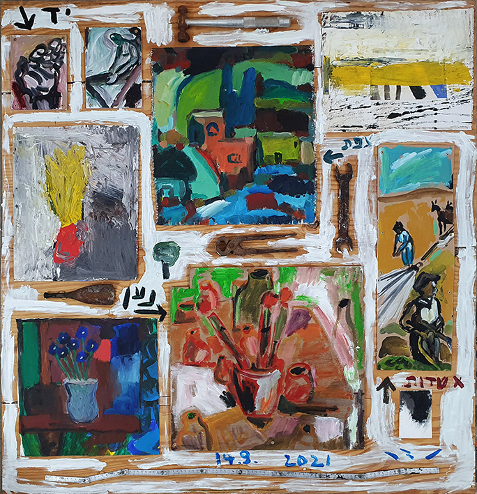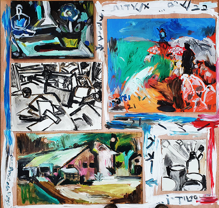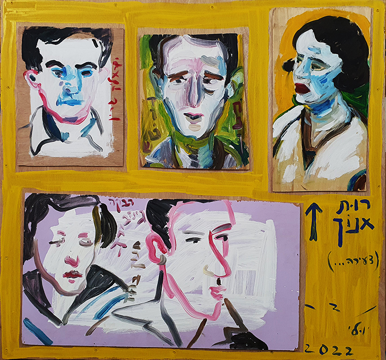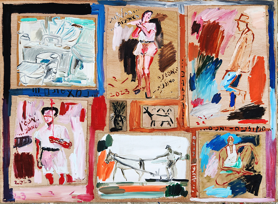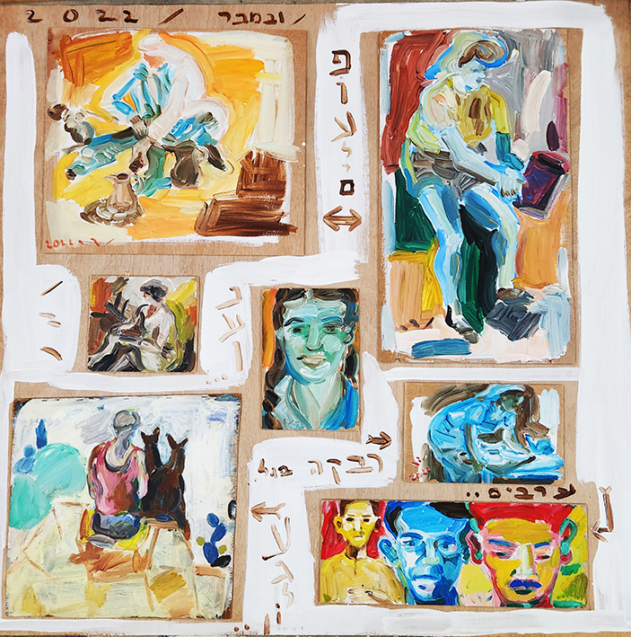 קרשים ועוד collages ..אורלי לוי.. איזו טעות.. טלח.. עופרי רכשה והציבה בחדרה.. אצל שקד וזיו.. בסלון של מיקה.. מטוס על גבי פלטה.. מראה על כיור.. כפר הצוללים באילת.. 2005-6 צבע אקרילי על לוח פורמייקה.. באצבעות בלבד.. עופריקי בת ה-6 לימדה אותי.. קטע קטע ציור מפעם.. מצאתי.. אוסף מועדון נען אוסף מועדון נען 190X140, קולאז בנוי מתקופות שונות.. קולאז, 202X83 גילה ודרורה ככה היינו כולם/ן קיבוצניקים של פעם.. חלוצים/ות אמיתיים/ות.. מין שמאלנים-ימניים שכאלה.. פלמ"ח.. ככה היינו.. אמא ואבא.. מעולם !! מעולם!! לא הרגשתי עצמי מקופחת.. למרות.. רישום צבע, פרט. מדבקה, פרט. מדבקה, פרט. פרט. עבודה לא גמורה של עופריקי ושלי.. עבודה משותפת עם עופרי בת ה-7 122 על 122ס"מ דיקט, 122ס"מ על 122ס"מ ארבע עבודות 122ס"מ על 122ס"מ מחוברות יחדיו דיקט מודבק על חלון ישן.. 2מ' על 2מ' תיקנתי.. צבע תעשייתי ואקריל ע"ג מזונית.. ערבי??.. ישמעלי??.. יהודי??.. חלוצה קיבוצניקית.. פועלים.. שותי האבסינט.. מה זה בדיוק??.. צבע אקרילי על דיקט.. 118ס"מ על 70ס"מ.. פועלת עבריה.. הסטודיו הישן.. מילואים בלבנון.. שוטפים כלים.. לבנון.. משחקים שח.. או שש-בש.. רישום צבע.. בנות נען.. הנהדרות.. 170ס"מ על 122ס"מ, קולאז', אקריליק על דיקט.. שתף לשתף ב-X (נפתח בחלון חדש) X שתף בפייסבוק (נפתח בחלון חדש) פייסבוק אהבתי טוען...