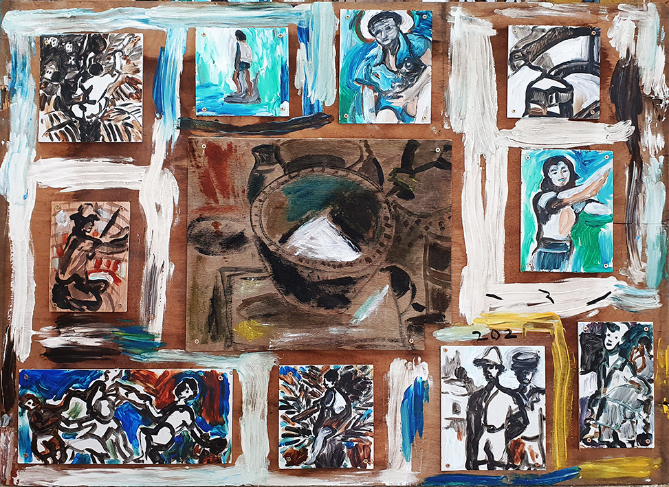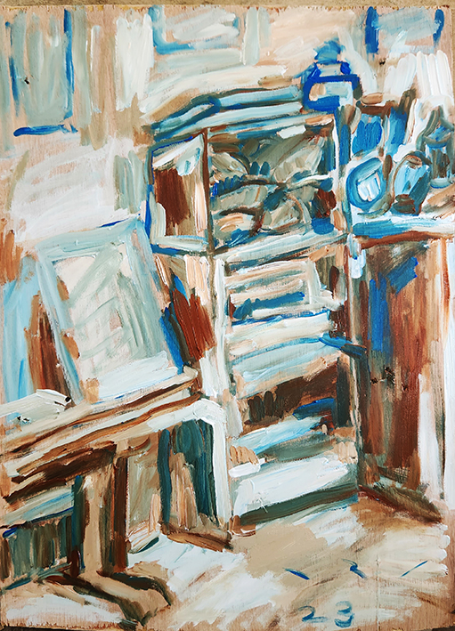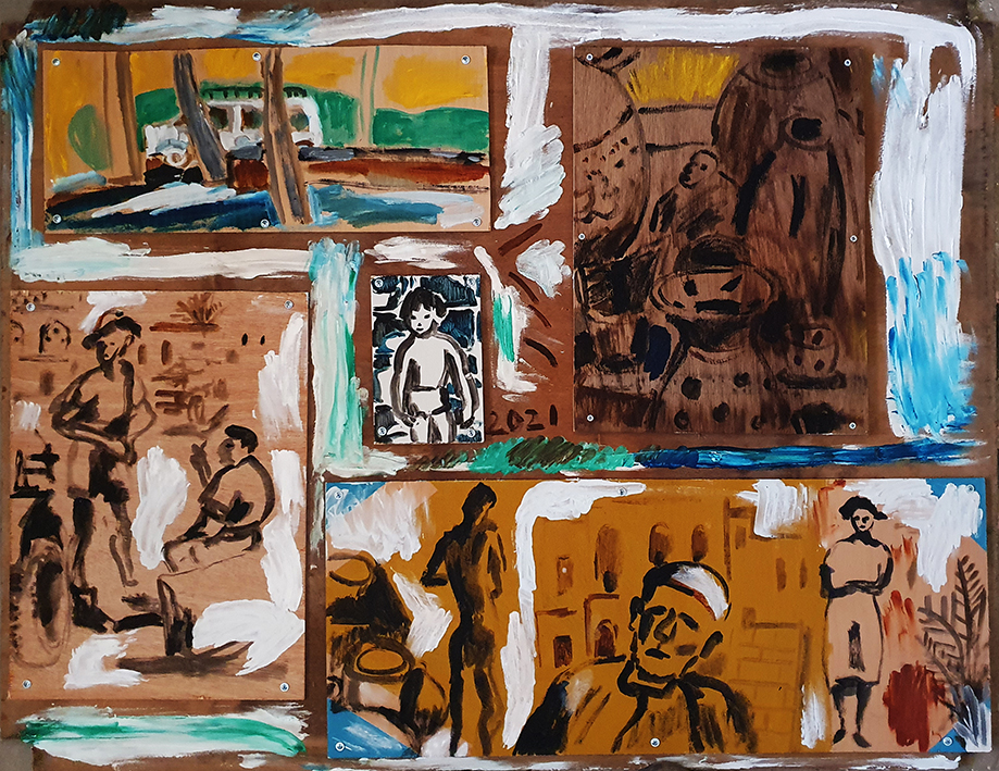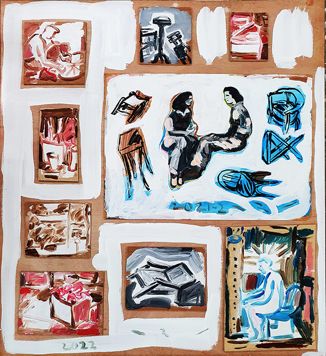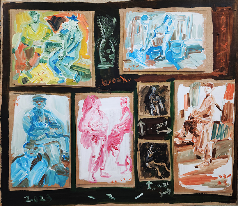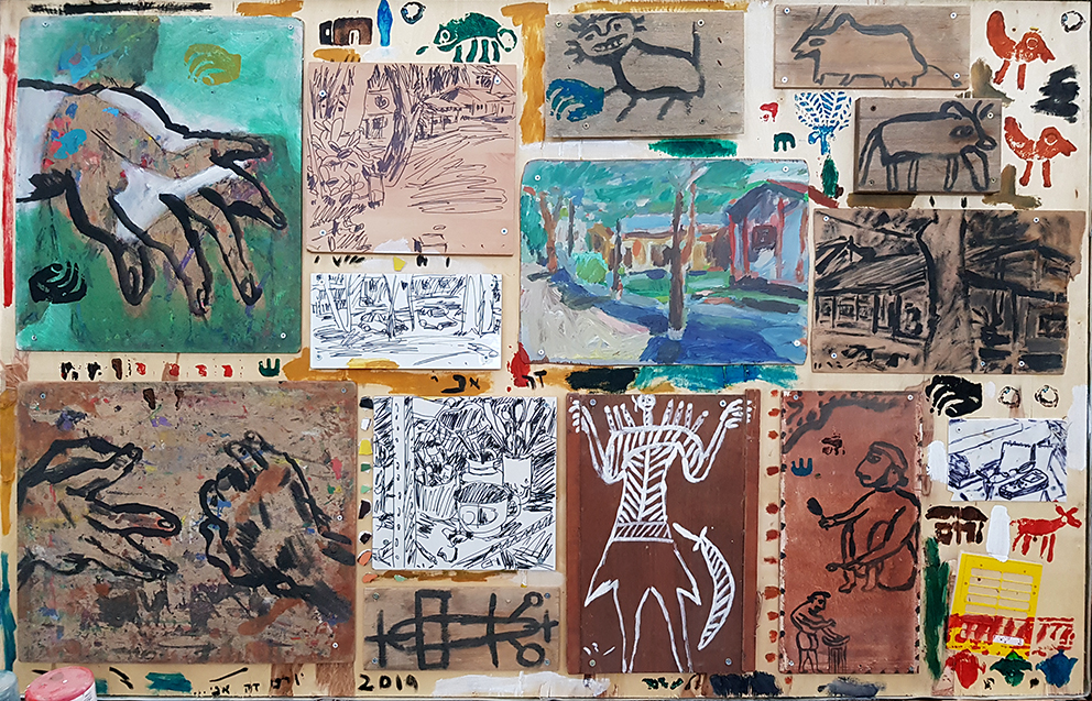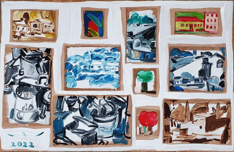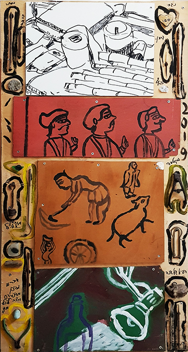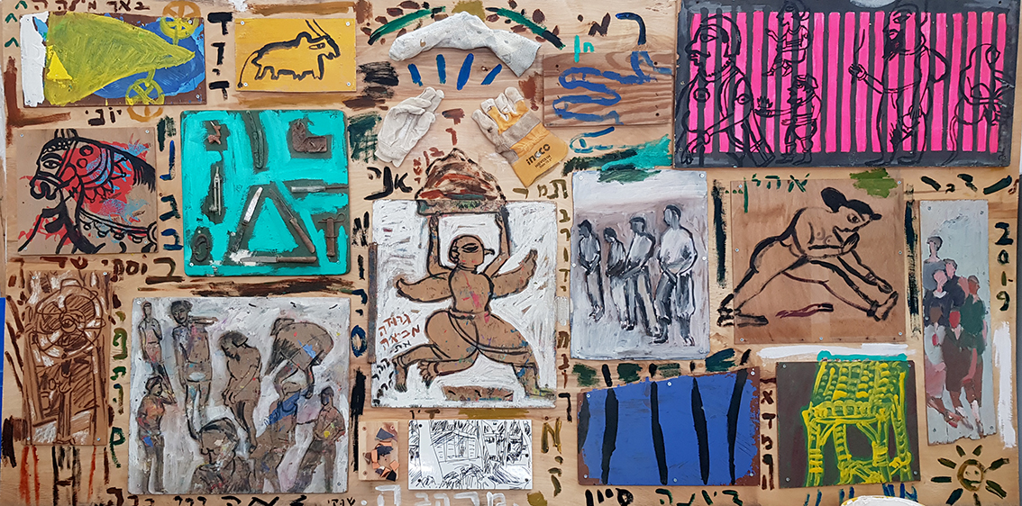 קרשים ועוד collages ..אורלי לוי.. איזו טעות.. טלח.. עופרי רכשה והציבה בחדרה.. אצל שקד וזיו.. בסלון של מיקה.. מטוס על גבי פלטה.. מראה על כיור.. כפר הצוללים באילת.. 2005-6 צבע אקרילי על לוח פורמייקה.. באצבעות בלבד.. עופריקי בת ה-6 לימדה אותי.. קטע קטע ציור מפעם.. מצאתי.. אוסף מועדון נען אוסף מועדון נען 190X140, קולאז בנוי מתקופות שונות.. קולאז, 202X83 גילה ודרורה ככה היינו כולם/ן קיבוצניקים של פעם.. חלוצים/ות אמיתיים/ות.. מין שמאלנים-ימניים שכאלה.. פלמ"ח.. ככה היינו.. אמא ואבא.. מעולם !! מעולם!! לא הרגשתי עצמי מקופחת.. למרות.. רישום צבע, פרט. מדבקה, פרט. מדבקה, פרט. פרט. עבודה לא גמורה של עופריקי ושלי.. עבודה משותפת עם עופרי בת ה-7 122 על 122ס"מ דיקט, 122ס"מ על 122ס"מ ארבע עבודות 122ס"מ על 122ס"מ מחוברות יחדיו דיקט מודבק על חלון ישן.. 2מ' על 2מ' תיקנתי.. צבע תעשייתי ואקריל ע"ג מזונית.. ערבי??.. ישמעלי??.. יהודי??.. חלוצה קיבוצניקית.. פועלים.. שותי האבסינט.. מה זה בדיוק??.. צבע אקרילי על דיקט.. 118ס"מ על 70ס"מ.. פועלת עבריה.. הסטודיו הישן.. מילואים בלבנון.. שוטפים כלים.. לבנון.. משחקים שח.. או שש-בש.. רישום צבע.. בנות נען.. הנהדרות.. 170ס"מ על 122ס"מ, קולאז', אקריליק על דיקט.. שתף לשתף ב-X (נפתח בחלון חדש) X שתף בפייסבוק (נפתח בחלון חדש) פייסבוק אהבתי טוען...