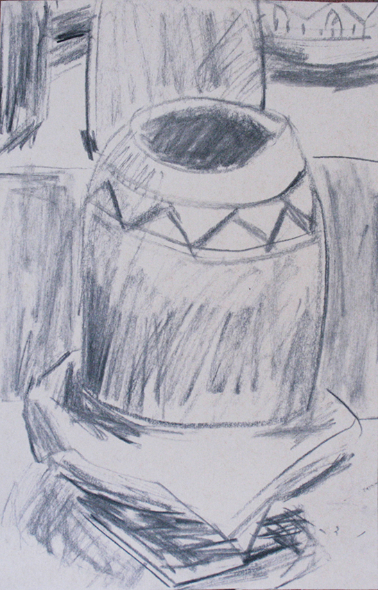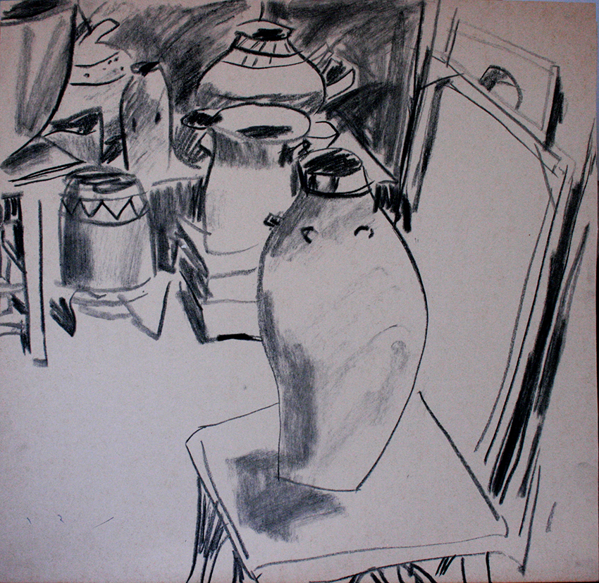 רישומי כדים Drawing flasks כדים אלו נרשמו על גבי פיסות קרטון, שאריות מהמפעל בנען. השתמשתי בגושי פחם קטנים שנותרו ממדורות בחורשות האקליפטוס סביב לקיבוץ. פחם טבעי רך יותר. לעתים לא סיים העץ את בערתו וגווניו חומים ואף צהובים. שתף לשתף ב-X (נפתח בחלון חדש) X שתף בפייסבוק (נפתח בחלון חדש) פייסבוק אהבתי טוען...