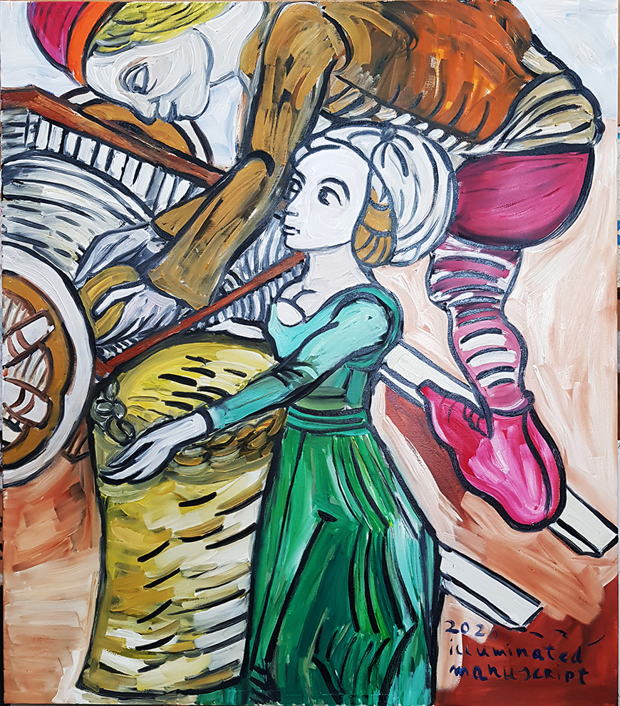 כתבי יד מימי הביניים.. לפני ואחרי.. תמיד עניין אותי מאוד.. סוג של קשר (כנראה..) לשורשי הגרמניים..שמן על בד, טכניקת עבודה וחומרים קלאסית משהו..מנסה להישאר קרוב למקור..